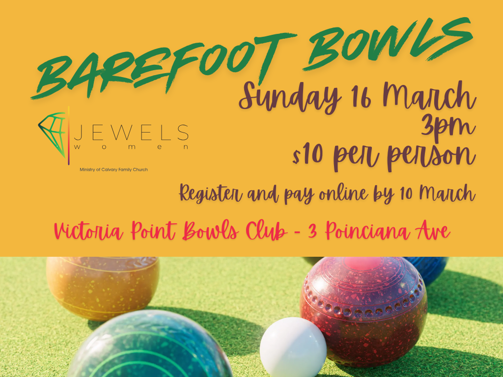 Jewels Barefoot Bowls16 March 2025 3:00 pm – 5:30 pm 3 Poinciana Ave, Victoria Point QLD 4165 Victoria Point Bowls Club Directions Register