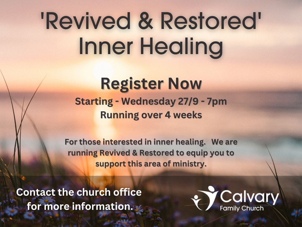 Revived & Restored – Inner Healing18 October 2023 7:00 pm 373 – 379 Chatswood Road Shailer Park 4128 Calvary Family Church Directions Register